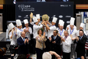 À l’issue de deux jours de compétition intense, la Corée du Sud, représentée par Seok Yong Hwang (candidat pain), Yong Hwan Choi (candidat pièce artistique) et Myung Gi Kim (candidat viennoiserie), a remporté la Coupe du Monde de la Boulangerie et succède ainsi à l’équipe de France, grande gagnante de la précédente édition en 2024. Le Taipei Chinois et la France, respectivement 2ème et 3ème place, complètent le podium du concours qui s’est déroulé pendant Sirha Bake & Snack 2026, en présence de Serge Papin, Ministre des Petites et moyennes entreprises, du Commerce, de l’Artisanat, du Tourisme et du Pouvoir d’achat. Cette 13ème édition a vu s’affronter les 10 meilleures équipes du monde, chacune composée de 3 candidats, autour de 4 épreuves mêlant technicité et cohésion collective : “baguettes et pains du monde”, “viennoiseries sucrées”, “snacking” et “pièce artistique”. Cette année, les pièces artistiques, véritables clous du spectacle, ont dû être réalisées dans le respect du thème “Les grandes inventions de votre pays”. Les candidats ont ainsi dû raconter une part de l’histoire et de l’identité de leur nation à travers la création d’une réelle œuvre d’art culinaire. Chaque pièce artistique devait mesurer entre 140 et 160 centimètres de hauteur, être intégralement comestible et intégrer au minimum cinq variétés de pâtes, dont 25 % de pâte levée. Le trio Sud-Coréen remporte cette nouvelle édition de la Coupe du Monde de la Boulangerie, 10 ans après leur première et unique victoire. Cette performance témoigne du savoir-faire sud coréen en matière de boulangerie-pâtisserie et de leur appropriation du concept de French Bakery, permettant à la Corée du Sud d’égaler le Japon et les États-Unis avec une seconde victoire depuis la création du concours en 1992. Ce résultat témoigne également de la place grandissante que prennent les pays asiatiques dans le secteur de la boulangerie, trustant 5 des 6 dernières éditions de la Coupe du Monde de la Boulangerie (Japon 2012, Corée du Sud 2016, Chine 2020 et Taipei Chinois en 2022).